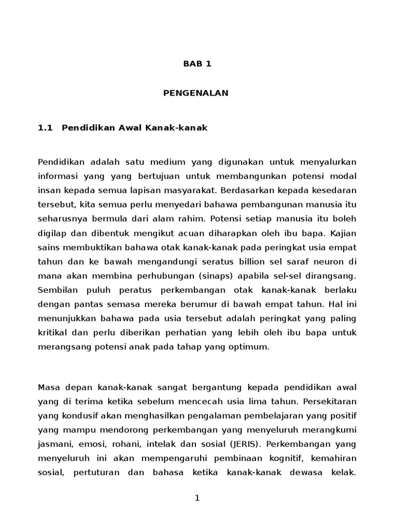 Kepentingan Pendidikan Awal Kanak Kanak Pdf