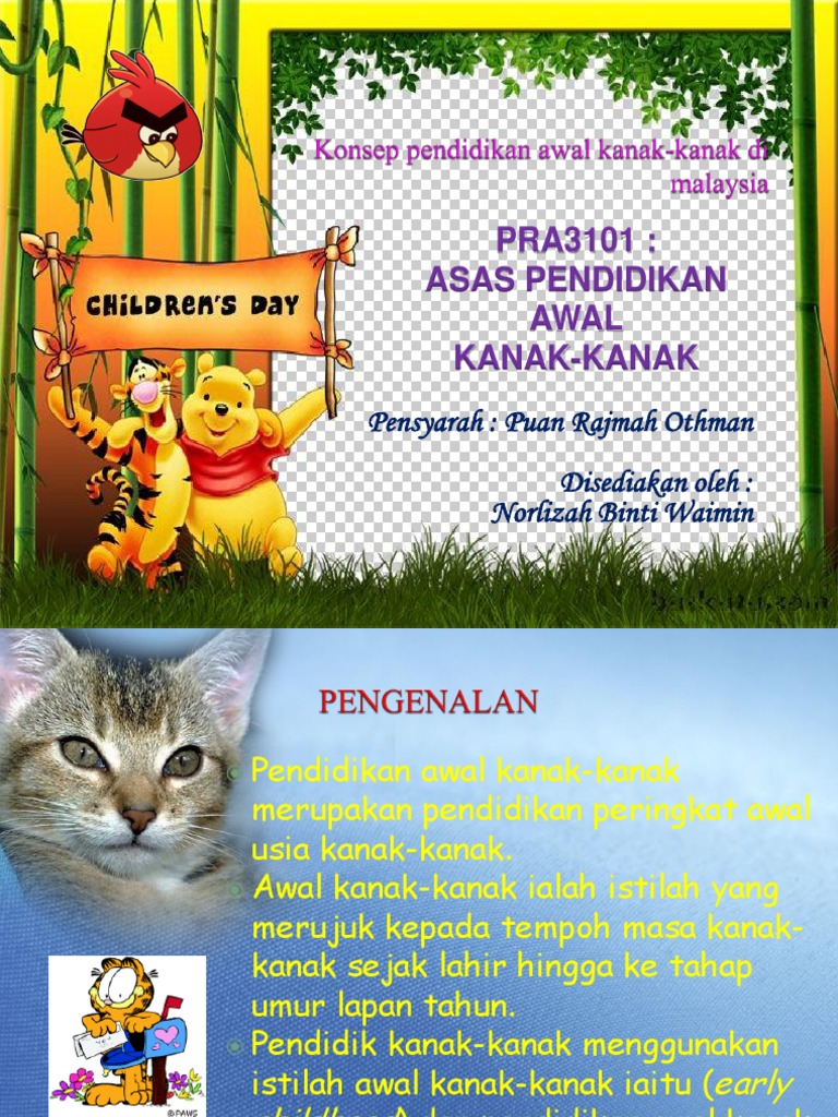 Namun ramai yang tidak tahu cara untuk mencorakkan kanak-kanak mengikut acuan yang betul. Di mana pendidikan awal harus dimulakan. Pendidikan Awal Kanak-kanak di Malaysia merujuk kepada program-program yang disediakan untuk kanak-kanak yang berumur sejak lahir sehingga lapan tahun Discover the worlds research 20 million members.