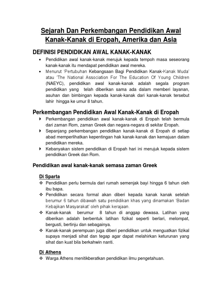 Sejarah Dan Perkembangan Pendidikan Awal Kanak Repaired Pdf