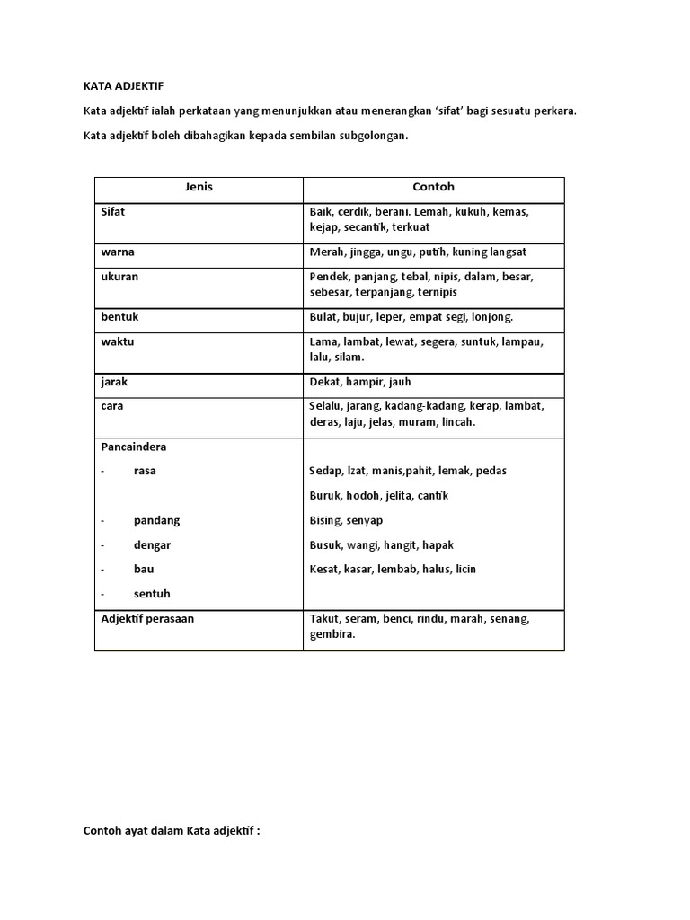 Jenis Dan Contoh Kata Adjektif Worksheet